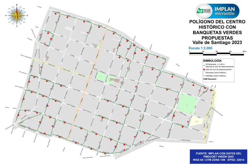 En total, en el polígono del centro histórico de la ciudad, hay 89 tramos que cumplen con los cuatro filtros que se diseñaron para el programa. Sin embargo, por cuestiones presupuestarias, en la primera etapa se cubrirán 34 de ellos e identificando en cada tramo cuatro cajetes para sembrar las doce especies nativas seleccionadas.